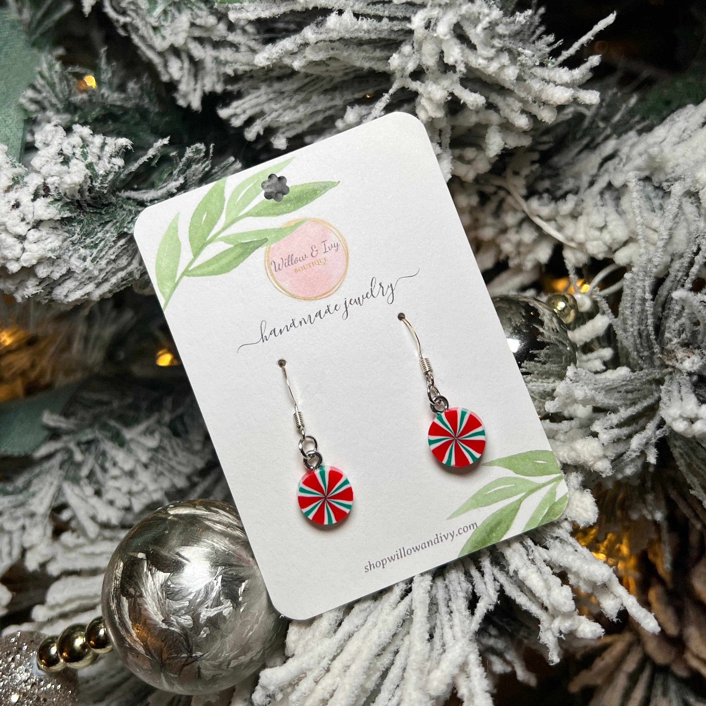 Sweeten your Holiday look with these charming peppermint swirl drop earrings! Featuring peppermint candy-inspired design, these dainty dangles bring festive cheer to any outfit. Lightweight and easy to wear, they're your go-to accessory for your Holiday celebrations!